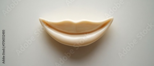 © Xava, Fototapeta premium Cream colored lip shape smooth texture clean background studio shot