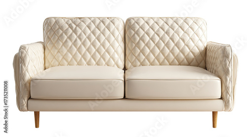 © cabs, Fototapeta premium Cream-colored quilted couch with sculpted armrests