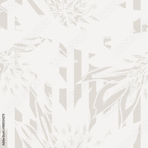 © Siu-Hong Mok, Fototapeta premium Cream Floral striped seamless pattern design