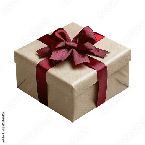 © PixelNest, Obraz premium Cream Gift Box with Red Ribbon Bow isolated on transparent background