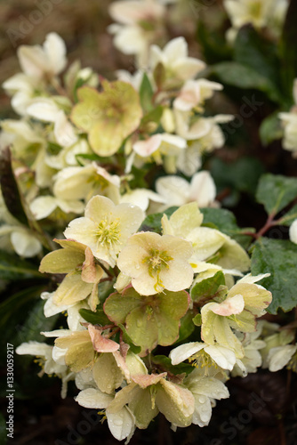 Fototapeta premium cream hellebore in raindrops, Helleborus