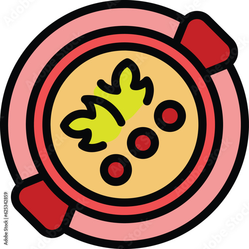 Obraz premium Cream noodle soup icon outline vector. Hot fish. Vegetable dish color flat