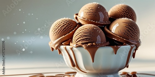 © Den Boro Day, Fototapeta premium Creamy Chocolate Ice Cream Scoops in a White Bowl on a Clean Background.