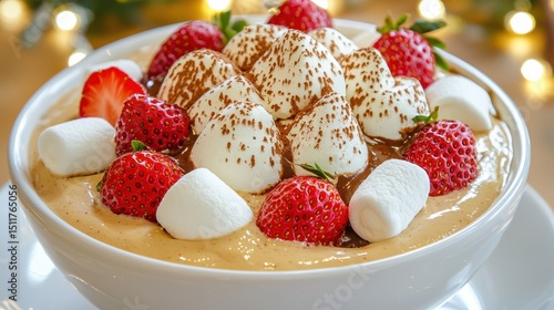 © Angellacelin, Fototapeta premium Creamy Dessert with Strawberries and Marshmallows
