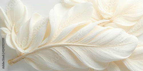 Obraz premium Creamy white feather texture, soft, delicate, intricate pattern , backdrop, cream