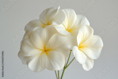 © ngamaz, Fototapeta premium Creamy White Plumeria Blooms Close-Up