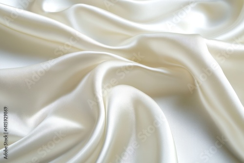 © Anjali, Obraz premium Creamy white satin fabric, elegantly draped, showcasing its luxurious texture and smooth folds.