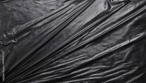 © Roch, Fototapeta premium Creased black plastic polyethylene film texture