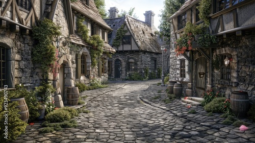 © wicha, Fototapeta premium Create a 3D scene of a quaint village