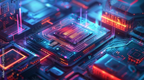 © Supasin, Fototapeta premium Create a futuristic image featuring a smart bank