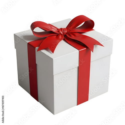 © Zamans, Obraz premium Create a Gift Box with Transparent Background: Design a Red Ribbon and White Box, Achieve a Professional Look Easily.