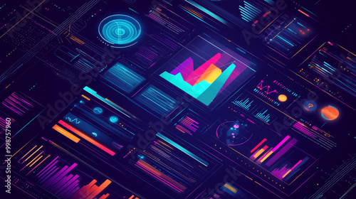 Obraz premium Create a graphic interface illustration representing data analysis for business and finance. Showcase futuristic computer technology displaying profit analytics, online marketing r