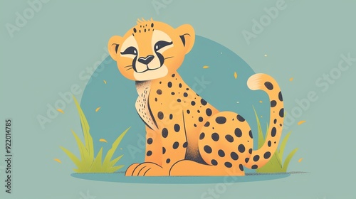 Fototapeta premium Create a illustration of a Cheetah on the huntin a kawaii style, simplified to feature fewer elements for a cleaner look, Use a color palette that is appealing to children, with bright and chee