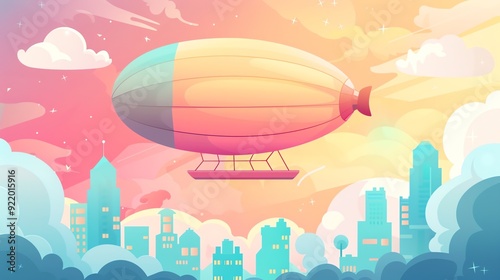 Fototapeta premium Create a illustration of a Zeppelin flying over the savannahin a kawaii...