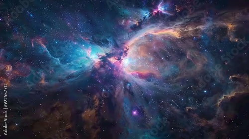 Fototapeta premium Create a vivid galaxy scene with a dynamic mix of swirling nebulae, glowing...