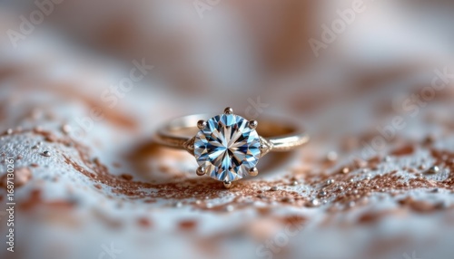© ซัรริฮา เวาะแมะ, Fototapeta premium create an elegant and romantic image of a diamond engagement ring symbolizing love, proposal, mitment, and romance