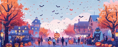 © ngstock, Obraz premium Create an image of a Halloween parade with floats and costumed participants