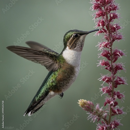 Obraz premium "Create an image of a vibrant hummingbird in mid-flight, hovering near a...