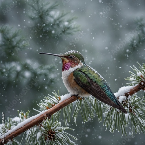 Obraz premium "Create an image of a vibrant hummingbird in mid-flight, hovering near a...