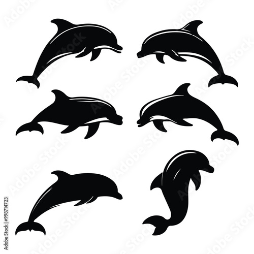 Fototapeta premium create black silhouette dolphin set vector with white background