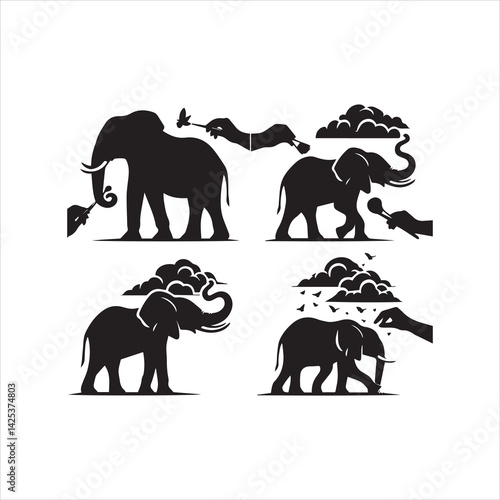 © Nusrat, Naklejka premium create elephant Silhouette Vector with white background