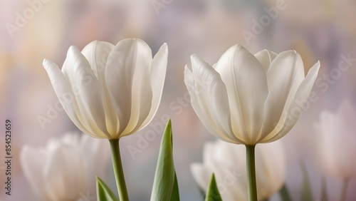 © Aniba, Naklejka premium create picture of set of white tulips.