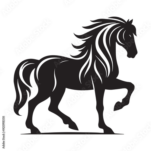 © Nusrat, Obraz premium create simple black Horse Silhouette Vector with white background