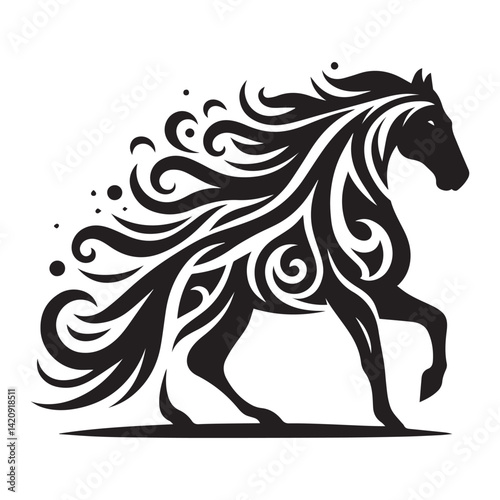 © Nusrat, Obraz premium create simple black Horse Silhouette Vector with white background