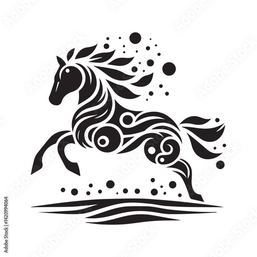 © Nusrat, Obraz premium create simple black Horse Silhouette Vector with white background