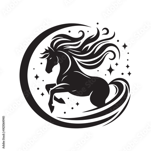 © Nusrat, Obraz premium create simple black Horse Silhouette Vector with white background