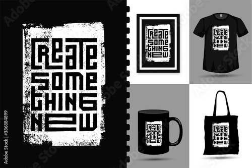 Naklejka premium Create some Thing New. trendy typography lettering vertical design template for print t shirt fashion clothing poster and merchandise