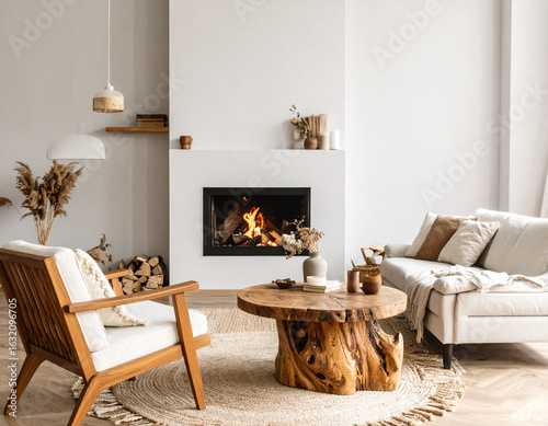 © Saktanong, Obraz premium Creating a cozy japandi living room minimalist furniture and decoration for home interior