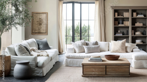 © Fatim, Obraz premium Creating a Cozy Living Room Comfy Seating: Choose oversized, cushy sofas and armchairs where you can relax fully.