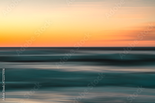 Fototapeta premium Creative abstract background. Sea and sky at sunset, motion blur