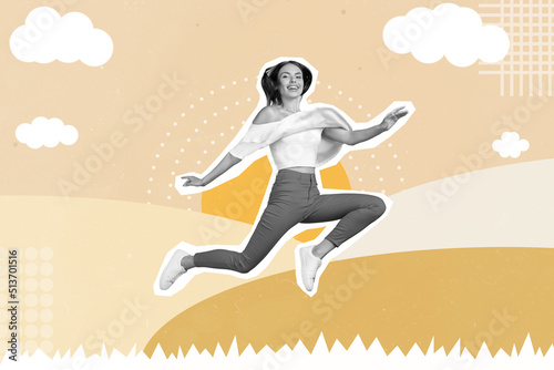 © deagreez, Naklejka premium Creative abstract template graphics image of black white visual effect lady walking outdoors isolated beige drawing background