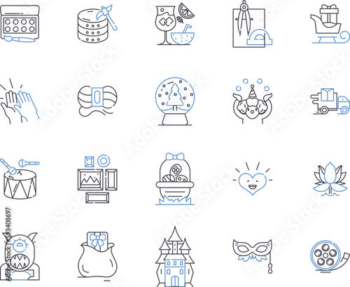 © michael broon, Naklejka premium Creative activities outline icons collection. Innovative, Crafting, Drawing, Painting, Designing, Imaginative, Composing vector and illustration concept set. Performance, Scriptwriting, Songs linear