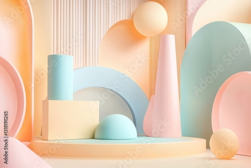 Fototapeta premium Creative agency branding with soft pastel 3D shapes, ideal for bright and...