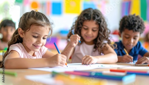 © MODERNARTWatChaRaWit, Fototapeta premium Creative art session classroom children engaged in drawing bright and colorful environment close-up perspective fostering imagination