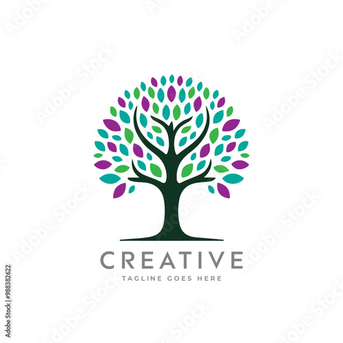 Obraz premium Creative artistic tree logo concept. eco friendly tree logo. Colorful leaf...