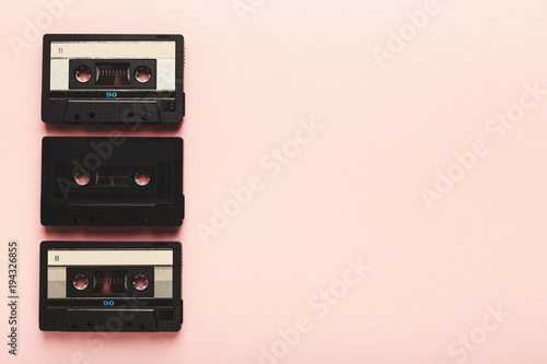 © Prostock-studio, Fototapeta premium Creative background with audio cassettes of different colors