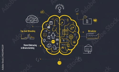 Naklejka premium Creative brain logo with business icons highlighting brainstorming and branding
