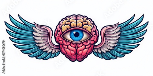 © Arnada, Naklejka premium Creative Brain with Eye and Wings Logo Design for Innovative Concepts and Branding, Perfect for Business Identity, Marketing, and Artistic Expression in Modern Visuals