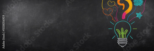 © Sawanee, Naklejka premium Creative Brainstorming - Creative Idea Bulb Concept on Blackboard