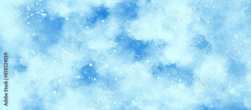 Fototapeta premium creative brush painted aquarelle light sky blue glitters, blurred and grainy Blue powder explosion, watercolor abstract grunge blue paper texture painting background, Natural and cloudy fresh sky.