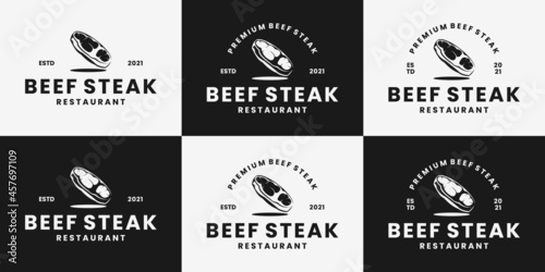 Fototapeta premium creative bundle fresh beef steak logo design retro style.