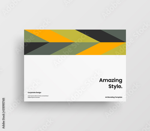 © kitka, Naklejka premium Creative business presentation vector A4 horizontal orientation front page mock up. Modern corporate report cover abstract geometric illustration design layout. Company identity brochure template.