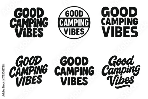 © Настя Шевчук, Fototapeta premium Creative Camping Lettering Grid. Good Camping Vibes. Set lettering. harmonious lettering variations of the same emblematic concept, each with different