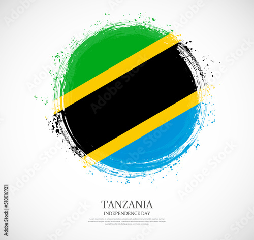 © Gautam, Obraz premium Creative circular grungy shape brush stroke flag of Tanzania on a solid background