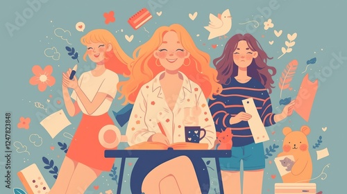 © Konde, Obraz premium Creative collaboration, three diverse women engaging in artistic endeavors