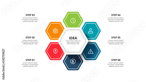 Fototapeta premium Creative concept for infographic with 6 steps, options, parts or processes.